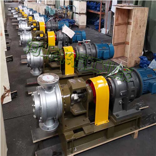 輸送易結晶物料時,在前蓋和泵體上可設計帶有保溫夾套,工作時通過蒸汽保溫融化。從主軸外伸端向泵看