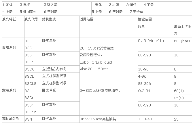 3G螺桿泵所輸液體為各種不含固體顆粒,無腐蝕性油類及類似油的潤滑性液體,所輸液體粘度為1.2-100E(3.0-760cst),高粘度液體亦可通過加溫降粘后輸送.